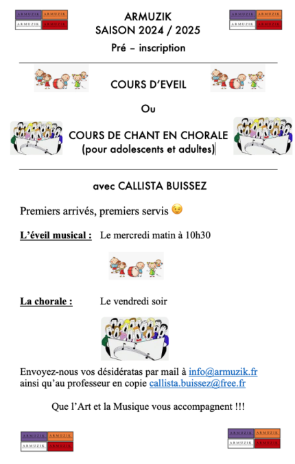 Les activités d'Eveil, d'Education musicale et de chant se déroulent dans les locaux de Chaumontrel ou ceux de Luzarches